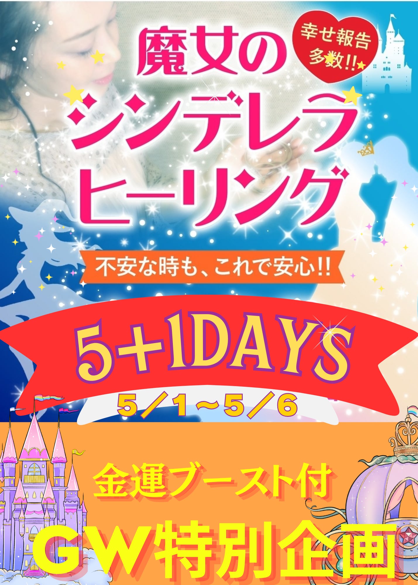 【GW特別企画】秘術付☆5Days+1☆魔女のシンデレラヒーリング&サイキックプロテクション+魔女の金運ブーストマジックミスト!